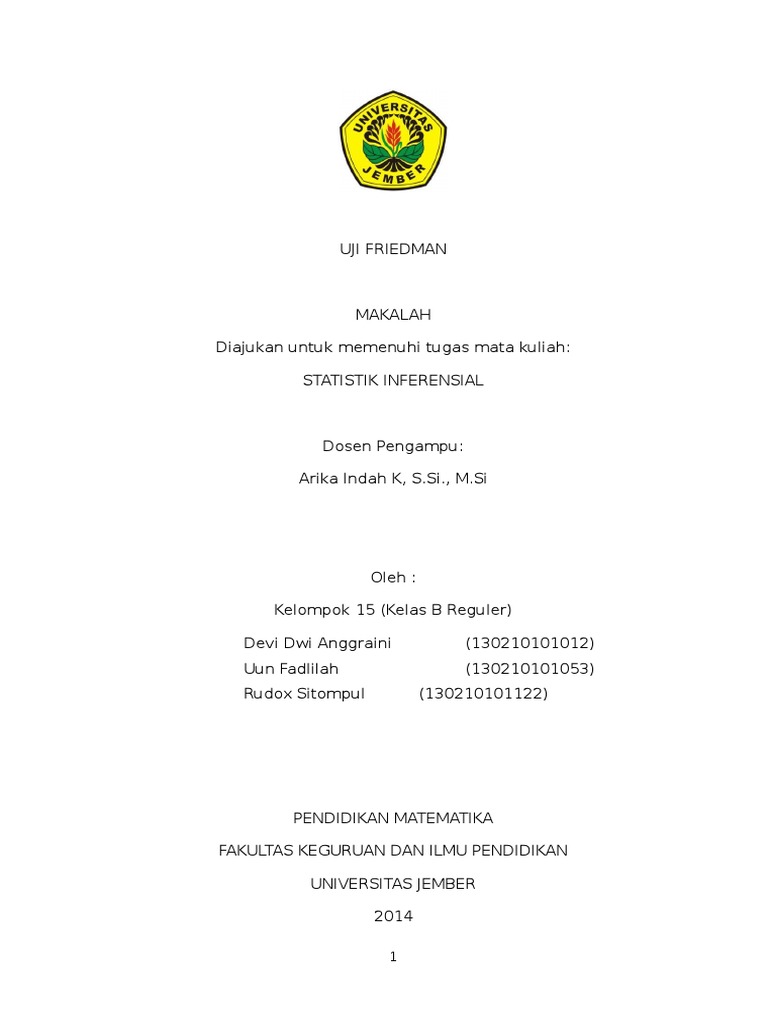 Uji friedman merupakan metode nonparametrik yang digunakan untuk rancangan acak kelompok lengkap.