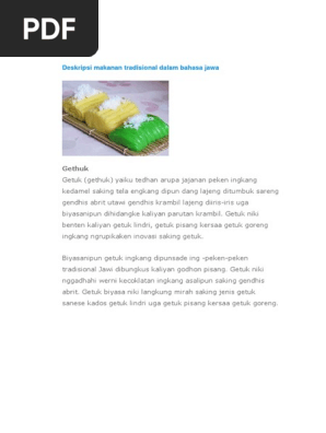 Teks deskripsi bahasa jawa tentang panganan tradisional. Check spelling or type a new query. Maybe you would like to learn more about one of these? We did not find results for: