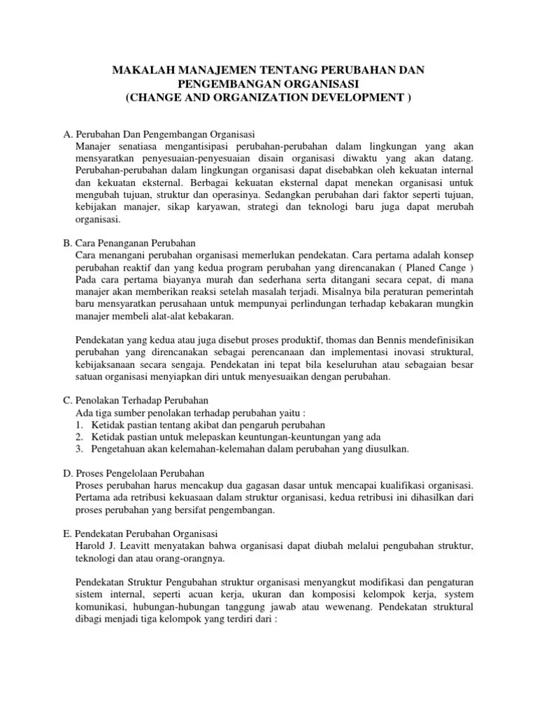 Contoh Makalah Manajemen Perubahan Perusahaan Organisasi / Contoh Makalah Organisasi Perusahaan Makalah - Tata nilai dan budaya perusahaan.. Istilah manajemen perubahan kerap digunakan dalam manajemen perusahaan atau organisasi menjadi salah satu faktor penentu keberhasilan yang . Buku manajemen perubahan ini terdiri atas 12 bab, yang membahas. Berdasarkan identifikasi menggunakan teori kotter, diketahui bahwa pt. Tata nilai dan budaya perusahaan. Perubahan adalah bagian yang penting dari manajemen dan setiap.